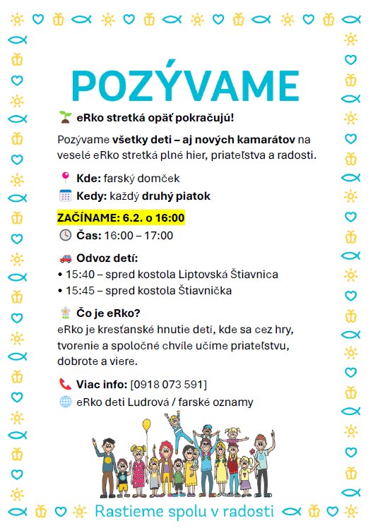 Detské stretká začínajú od 6.2.2026 v čase od 16:00-17:00. Tešíme sa na Vás ![]()